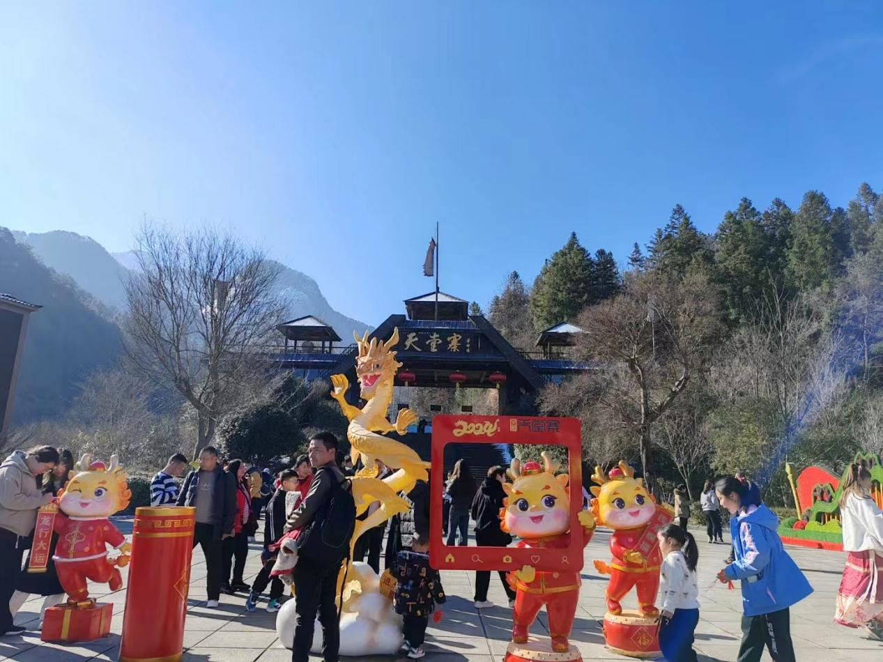 2024 年的春节假期,天气晴好,冬雪与暖阳相伴,天堂寨景区如同一颗璀璨的明珠,散发着迷人的光芒,吸引无数游客纷至沓来。这个充满欢乐和希望的节日里,景区展现出一片繁荣兴旺的景象,为人们带来了一场别样的旅游盛宴。春节第三、四、五天连续破单日游客量历史记录,假日期间,景区共接待游客6.51万人次,同比增长55.32%,天堂寨度假山庄入住间夜同比增幅110%,连续六天观瀑楼满房,实现龙年春节开门红。