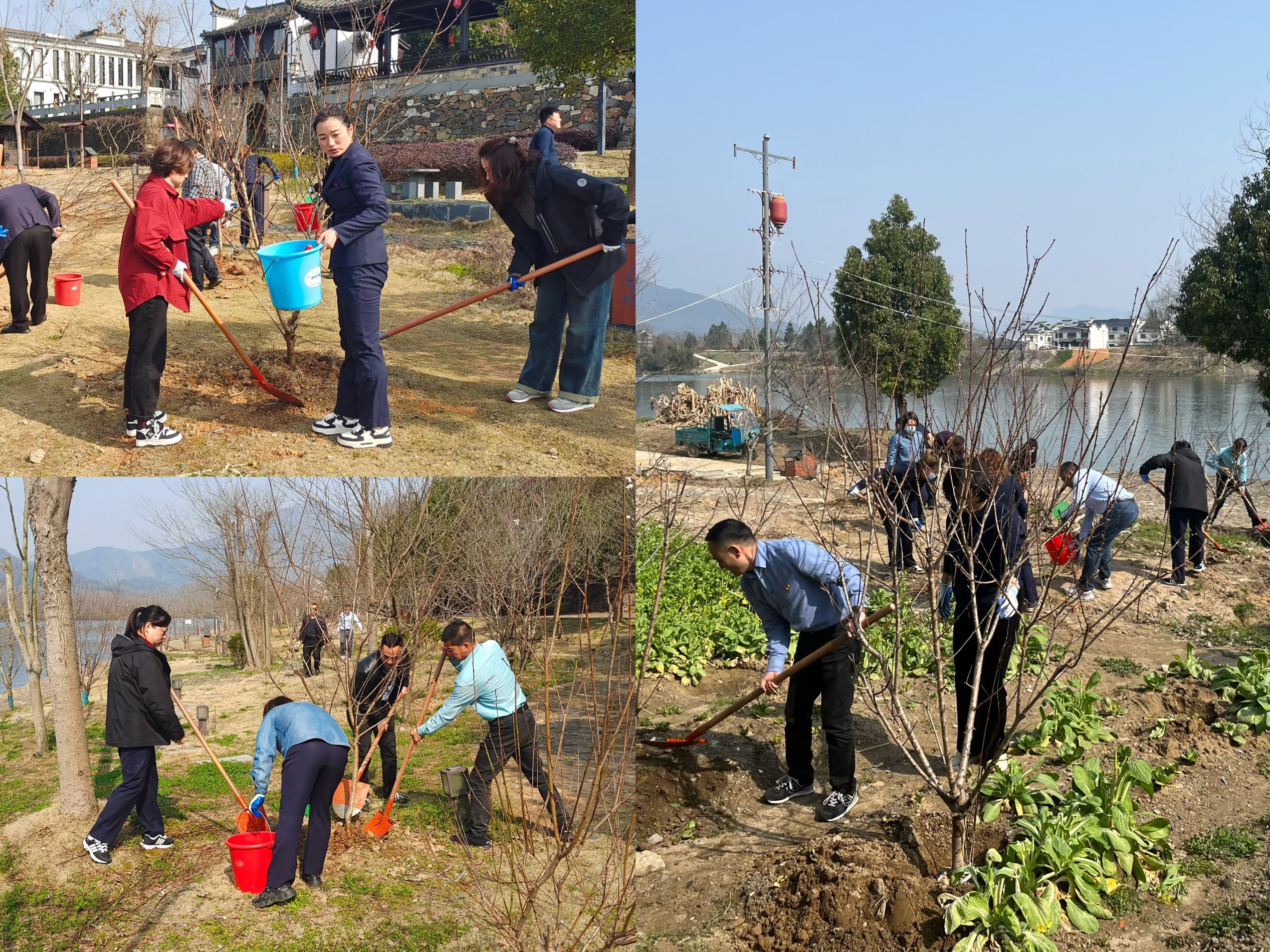 3月的桃花潭景区,春风和煦,一片生机。到达活动现场后,大家撸起袖子、拿起工具迅速投入到植树劳动中,大家分工明确、相互配合,个个精神饱满、热情高涨,有的扶苗定植,有的挥锹铲土,有的浇水养护,各个环节衔接有序、配合默契,现场呈现出一片其乐融融、热火朝天的景象。大家充分发扬不怕苦、不怕累的精神,经过两个多小时的努力,共种植桃树100余株。