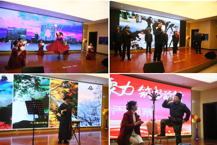 公司各单位精心准备的歌曲、舞蹈、双簧、大鼓书、三句半、军姿表演、相声、哑剧以及镇老年大学参演的乐器联奏、民歌联唱等15个表演节目倾情上演,赢得在场员工及员工家属的阵阵欢呼和热烈掌声,其间穿插的抽奖活动、游戏互动,让会场惊喜不断。