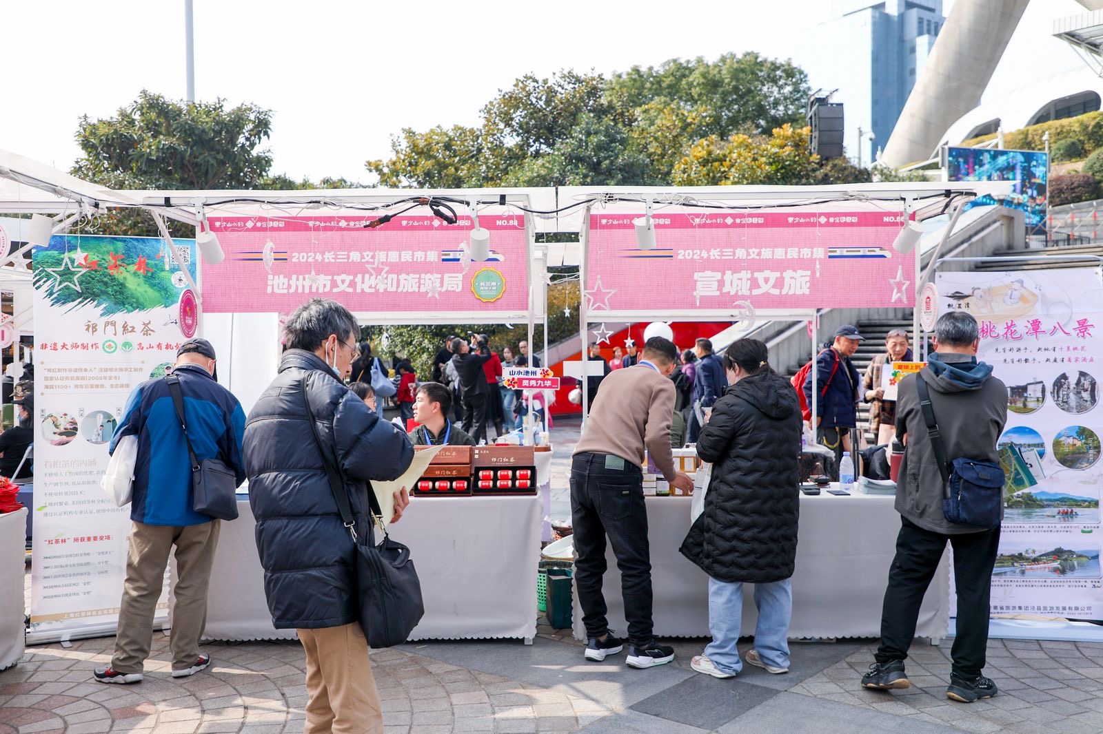 为加速推进桃花潭景区融入长三角一体化进程,发挥桃花潭景区得天独厚的资源优势,3月15日至3月17日,泾县公司参加了由长三角旅游推广联盟指导、《旅游时报》社主办的2024年长三角文旅惠民市集。惠民集市于3月15日上午10点在东方明珠广场正式开展,桃花潭景区和桃花书院民宿首次高调亮相“东方明珠”。