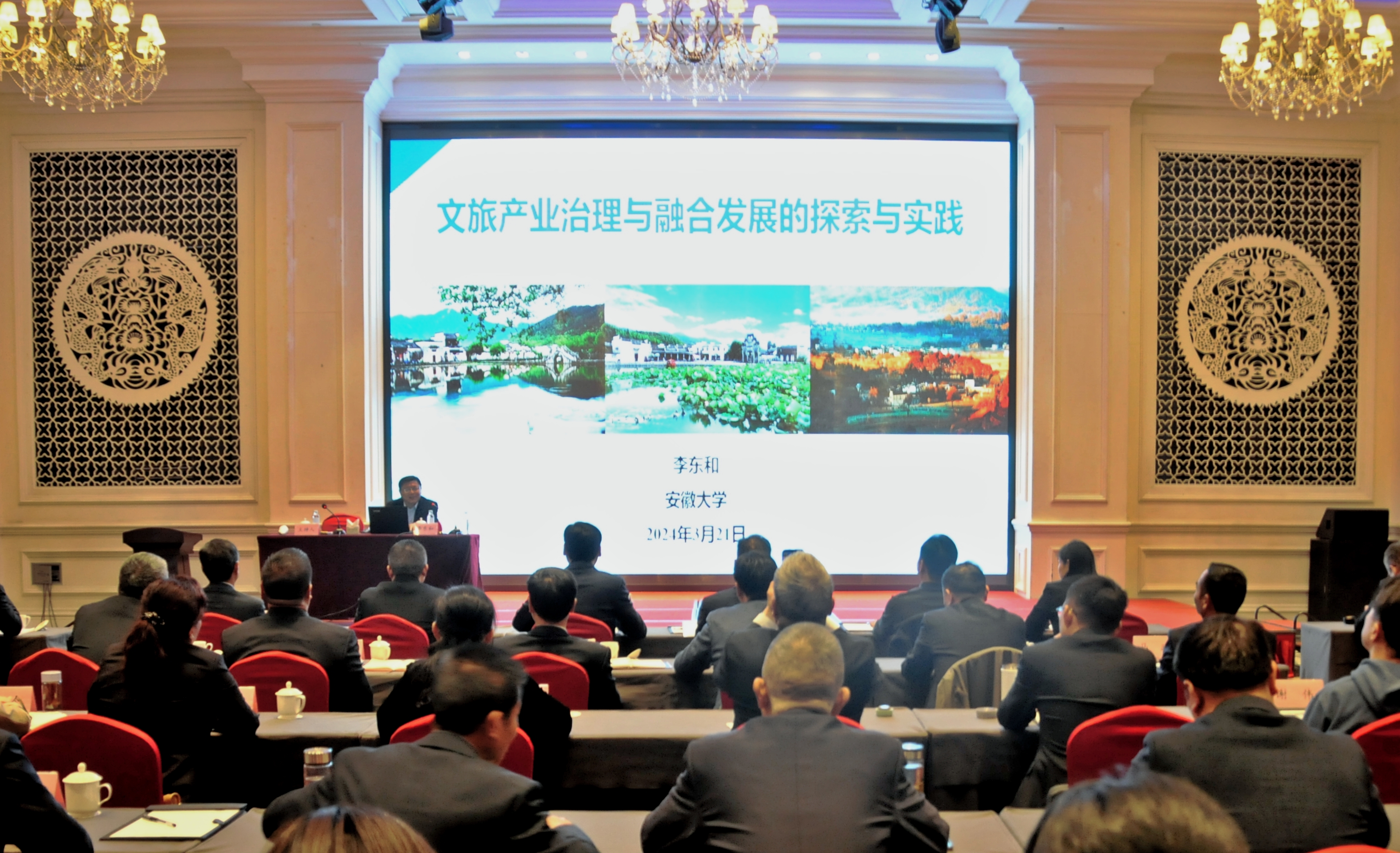首期文旅大讲堂邀请了安徽大学商学院副院长、教授、博士、硕士生导师,安徽大学旅游规划与研究中心主任,安徽省旅游学会副会长李东和院长为大家作《文旅产业治理与融合发展的探索与实践》专题讲座。李院长从行业能力建设、治理能力建设、文旅产业融合发展的基本逻辑与框架、文旅产业融合发展的实践探索案例四个方面深入浅出地为大家进行了详细解读。