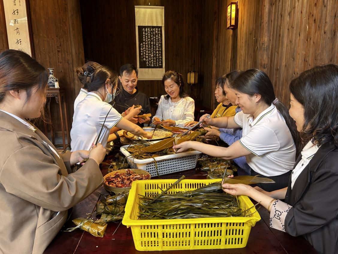 活动现场还吸引了不少游客的参与,游客们纷纷即兴体验包粽子的乐趣,感受独特的旅游体验。粽子煮熟后,公司还组织了“送粽子活动”,将承载着浓浓关怀的粽子分发给公司所有员工,并送上端午节日祝福。