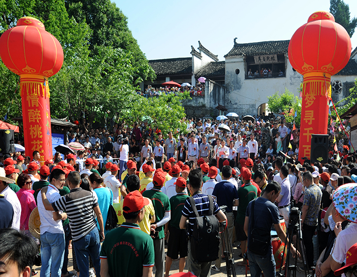 桃花潭景区两岸人头攒动,加油喝彩声响彻云霄,当年明朝时期在桃花潭水上练兵的壮观景象再现眼前。