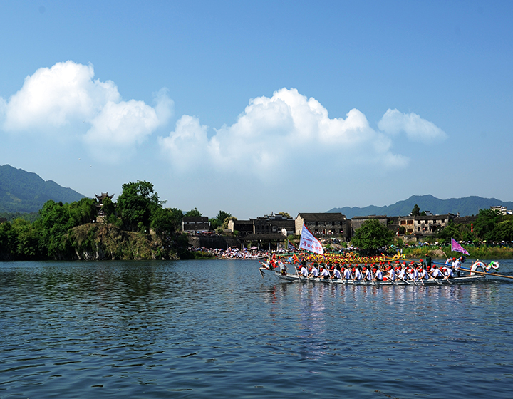 梦里寻它千百度,一盏情醉桃花潭。桃花潭景区不仅有良好的山水生态,更有友情和古建筑文化元素的点缀。龙舟竞渡在山水间,仿佛是一幅绝佳的山水画作,让人流连忘返。