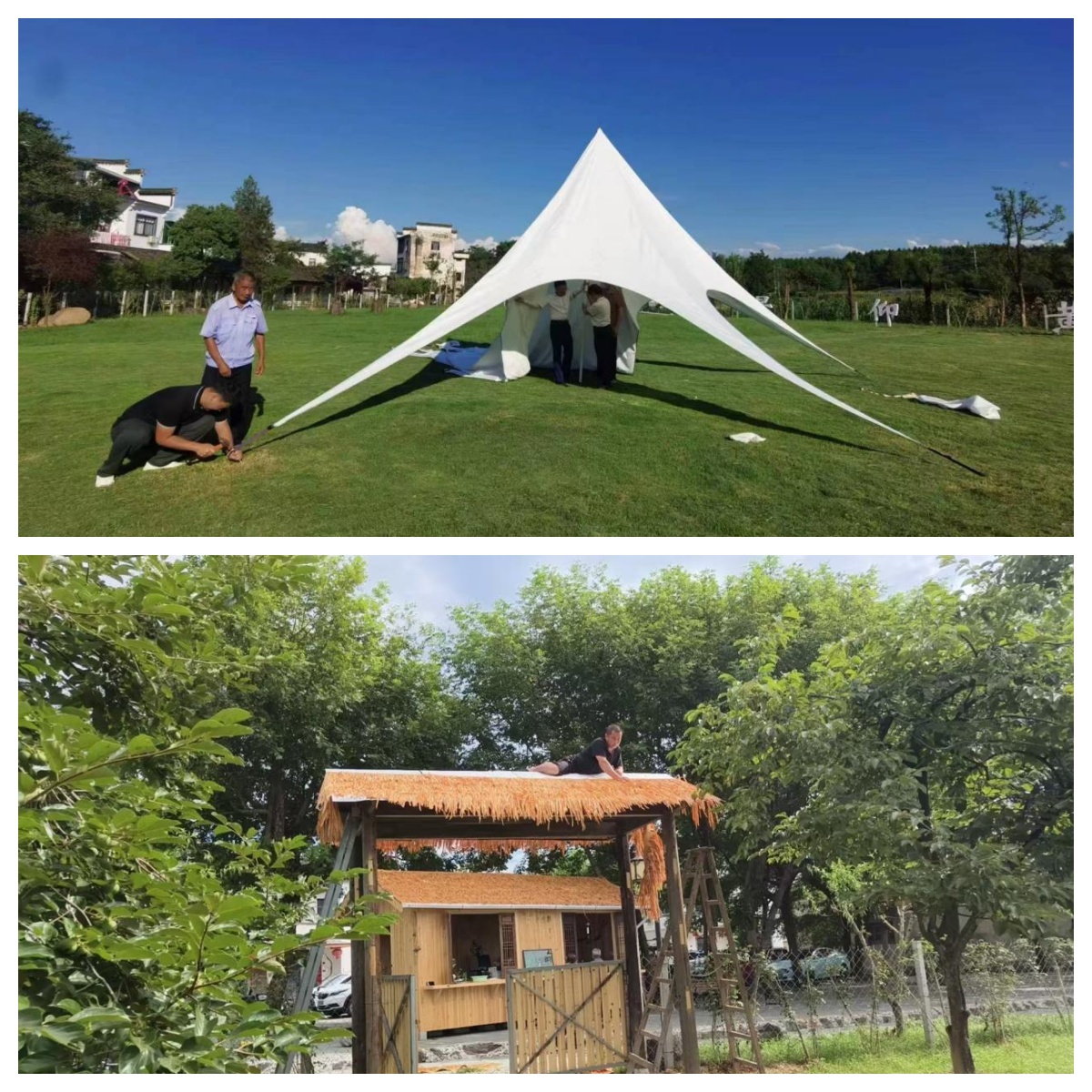 烈日下,唐模悠悠云营地项目正在紧锣密鼓地进行中,项目工作人员全力以赴抢抓工期赶进度,与高温抗衡,与烈日较量,精心布置露营场景,增设多种游玩项目,只为游客提供更丰富的旅游体验。