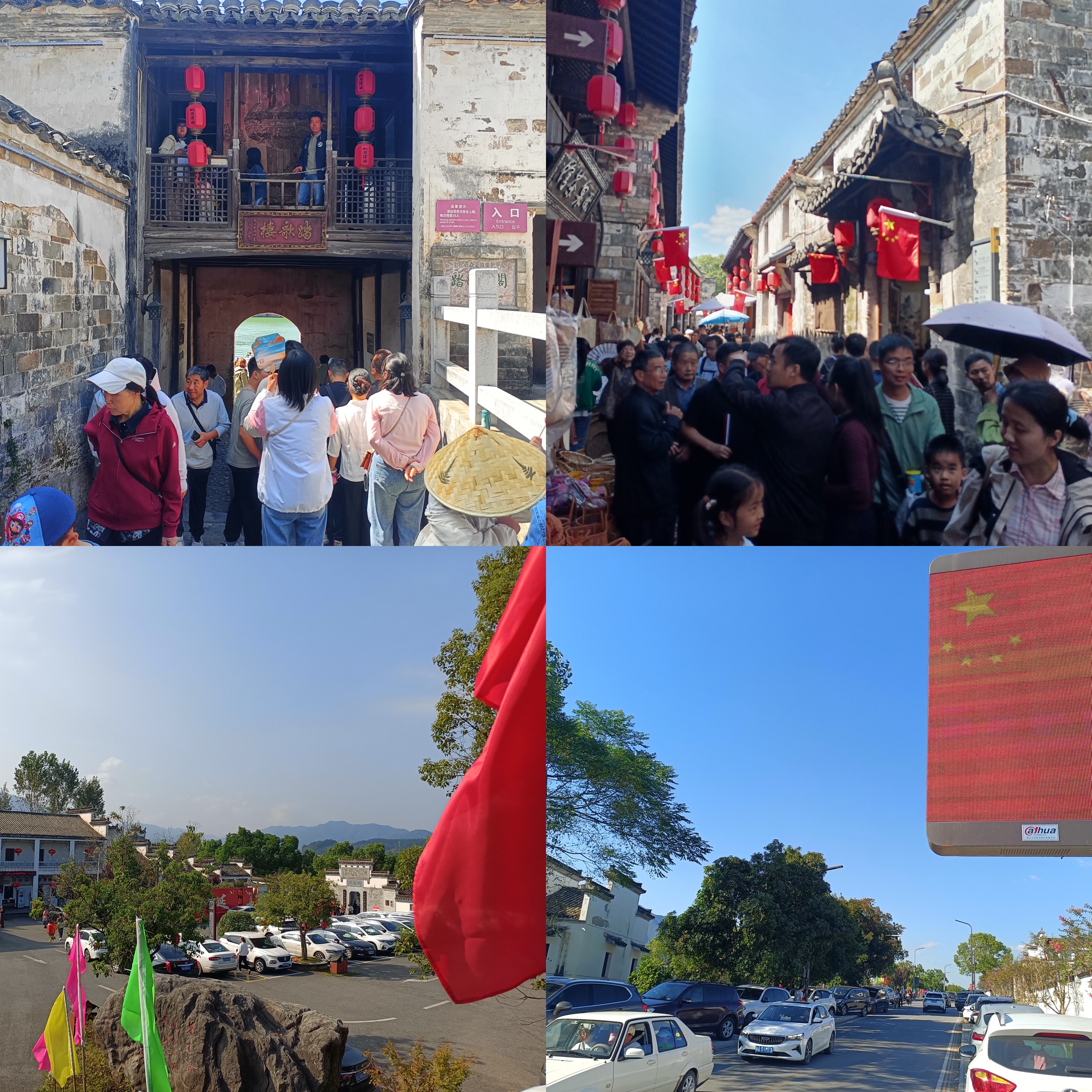 “漫步老街巷口,一面面国旗与蓝天、白墙相互映衬,妥妥的中式浪漫?!?0月2日,在桃花潭景区,国旗飘扬、灯笼高挂,来自上海的游客王雅琴一行不禁连连赞叹,原来古镇遇上“中国红”,如此惊艳。