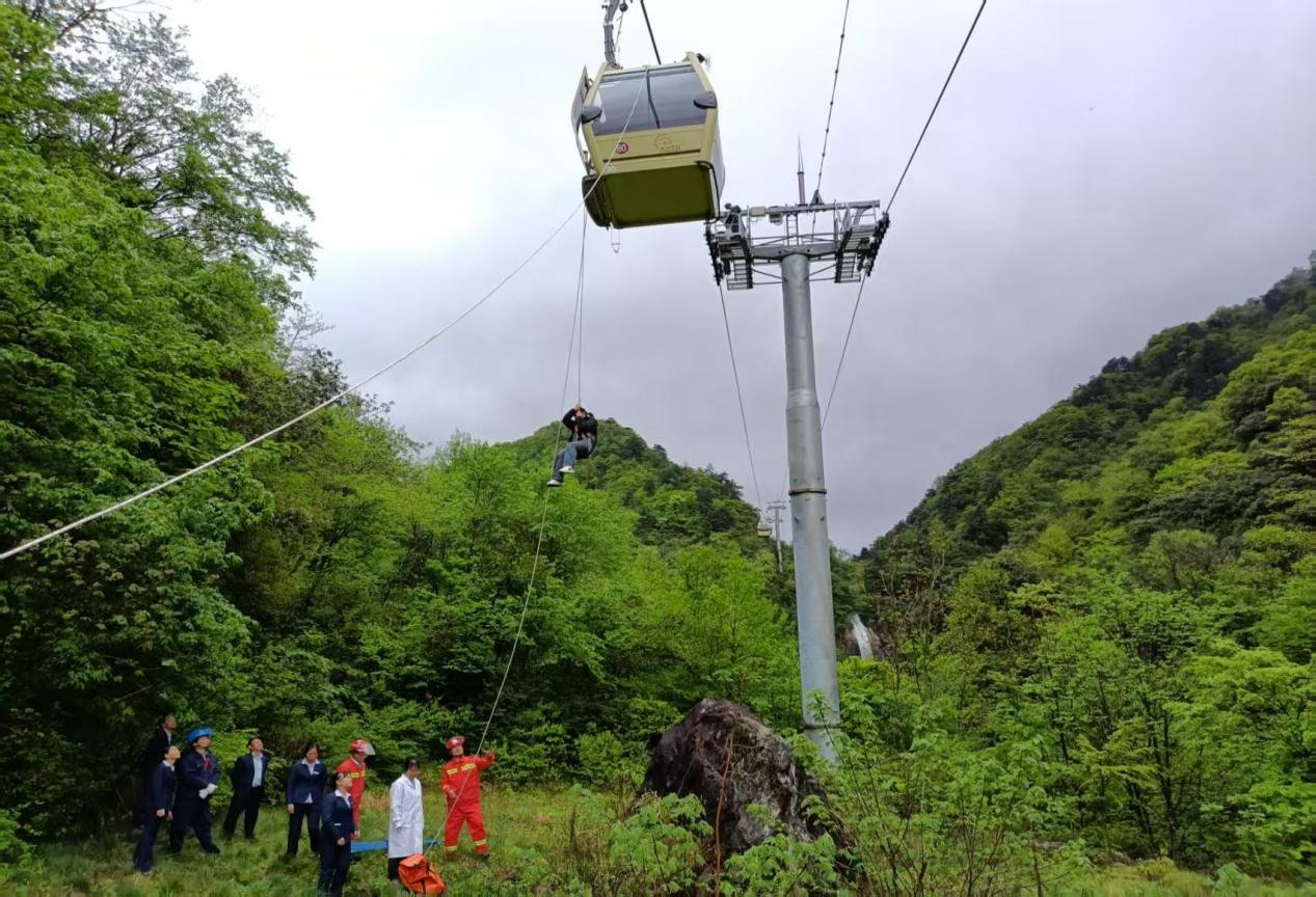 在救援过程中,大别山索道通过广播系统,及时对被困“游客”进行情绪安抚,并说明配合救援的相关要求,缓解其紧张情绪。索道安全救援人员、医护人员、消防人员迅速携带专业工具赶赴现场。救援人员凭借熟练的技术和丰富的经验,通过空地协作的方式,小心翼翼地将“被困游客”从高空轿厢中安全救助到地面。医疗救护小组严阵以待,对获救“游客”进行身体检查和必要的医疗救治。设备抢修小组则争分夺秒地对故障设备进行排查和抢修,力求尽快恢复索道的正常运行。