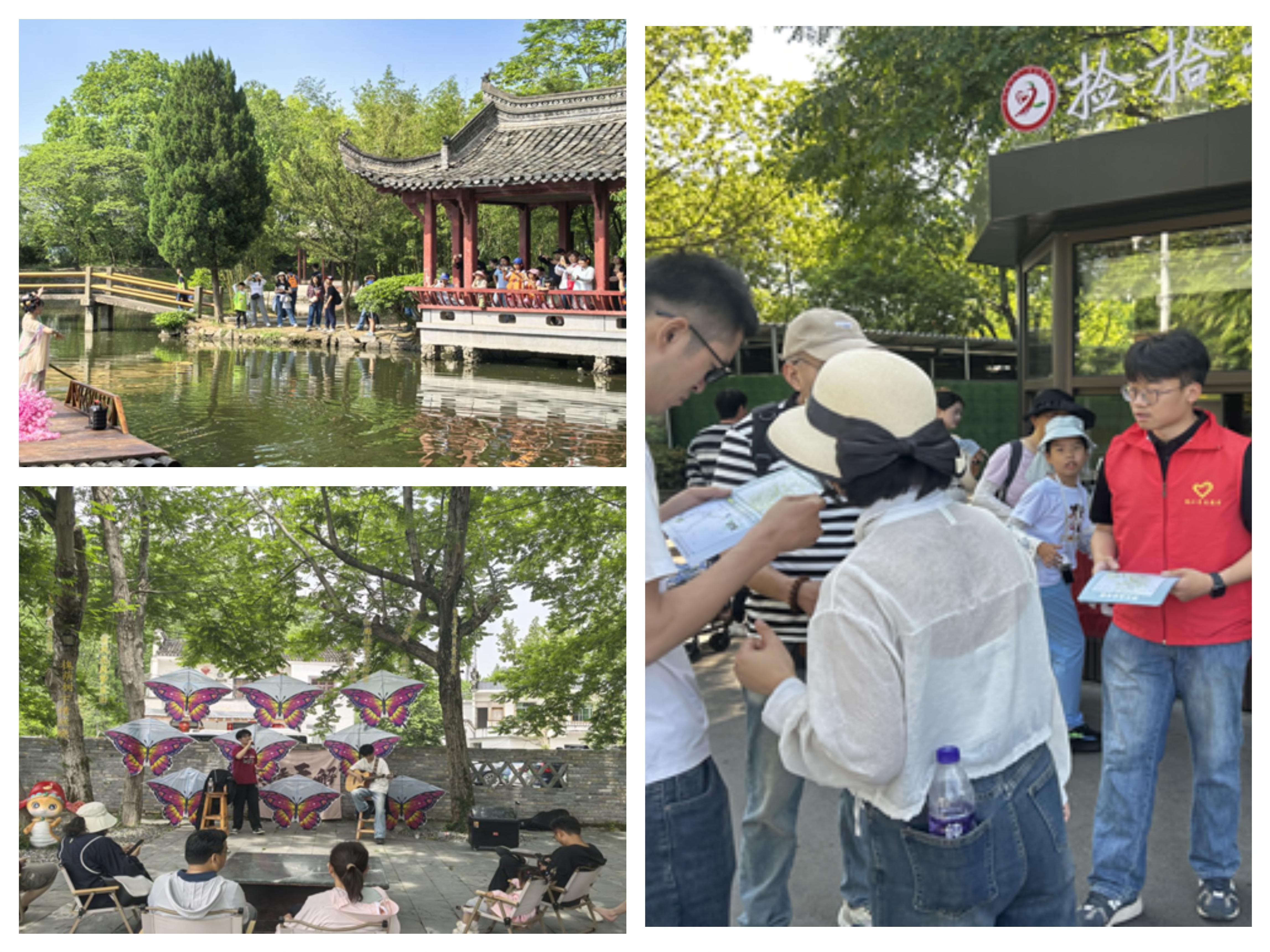 在五四青年节期间,唐模公司团支部以"传承五四精神,绽放青春光彩"为主题,组织青年职工开展系列特色活动。活动首站于西溪南古村设立旅游服务站,青年志愿者通过发放导览图、解答咨询等方式为游客提供便利,同步推广唐模景区,成功吸引众多游客前往打卡体验。青年职工随后在檀干园上演文化盛宴,身着汉服手持油纸伞的表演者与蓑衣斗笠的摆渡人配合,在竹筏上以舞蹈艺术展现唐模西湖的素雅之美?;粕窖г荷缤叛侄邮苎斡?青春之歌"演出,激昂歌声赢得现场阵阵掌声。此次活动通过文旅融合形式,既让青年游客感受古徽州文化魅力,更以创新实践激励新时代青年传承五四精神,以奋斗姿态投身民族复兴伟业。