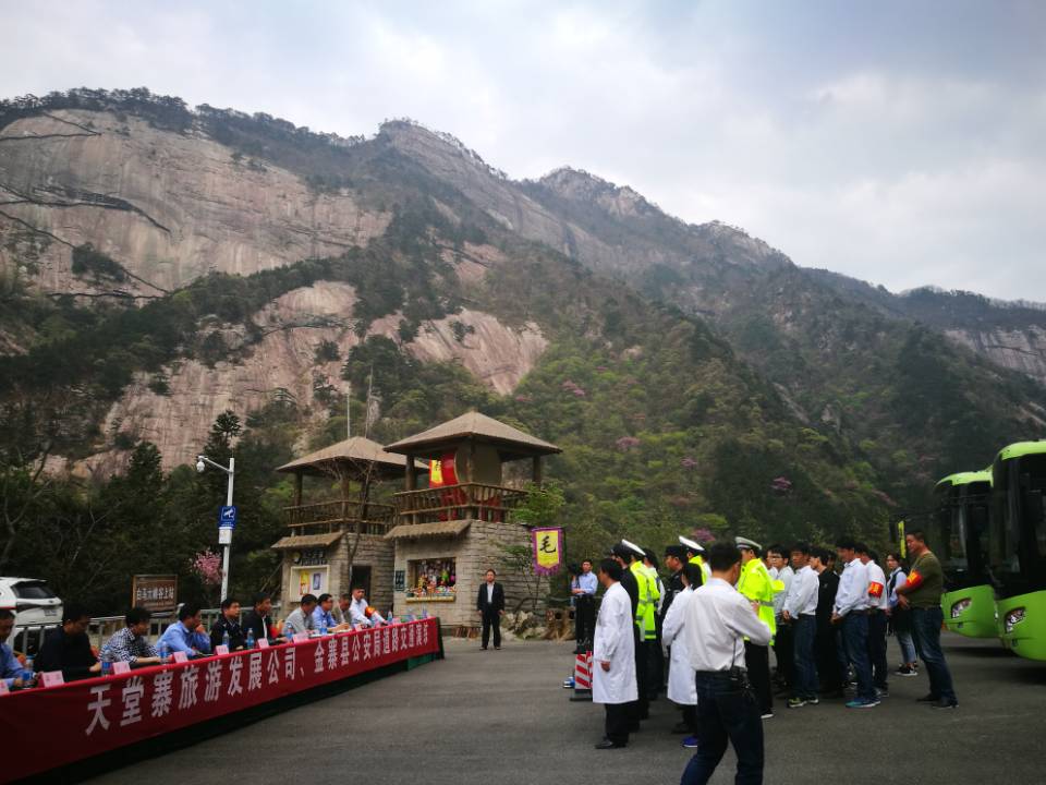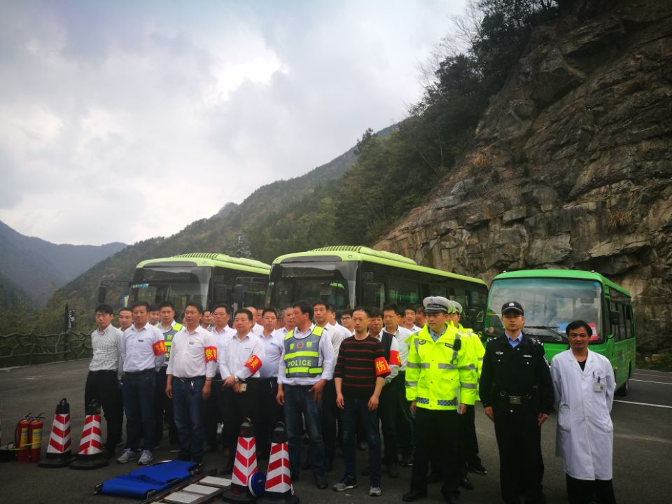 2018年4月3日,天堂寨旅游发展有限公司、金寨县公安局交管大队、天堂寨派出所、天堂寨镇医院联合在天堂寨景区峡谷上站旅游公路成功开展了道路交通事故应急救援演练。