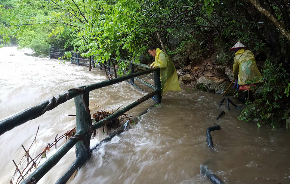 面对突如其来的自然灾害,在公司的统一指挥调度下,从早上6点多开始,景区工作人员便赶往景区旅游公路和景区主要节点查看水情和受灾情况,分头对受到损坏和堵塞的道路实施清理和抢险,经过一天的紧急抢修和应急处理,景区大门口至虎行地路段恢复畅通,景区各节点的清理工作全部结束,确保了主景区(瀑布群)、白马大峡谷于23日全面开放。