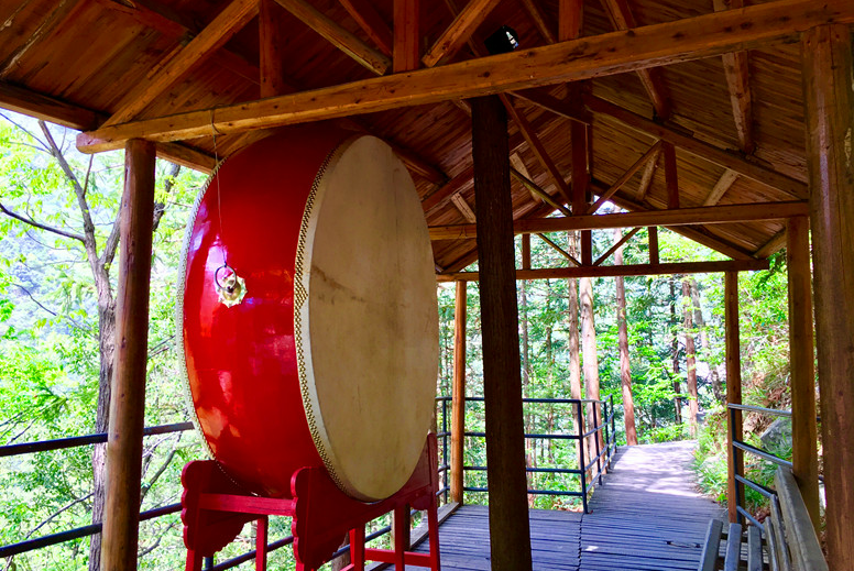 刚出滑索站,一面红色大鼓映入眼帘,哎呦,真可以擂大鼓!