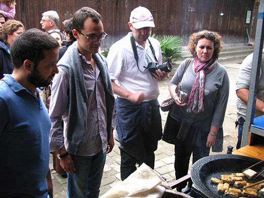 法国朋友品尝景区内老作坊现场制作的毛豆腐