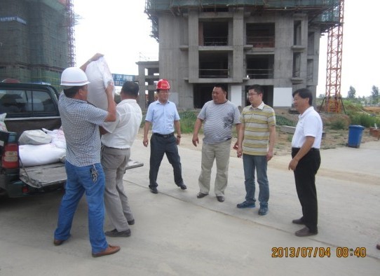 2013年7月4日上午8:30分,安兴六安置业公司领导班子在工程部负责人的陪同下一行数人,冒着酷暑前往施工现场,深入基层一线,送去了绿豆、白糖等防暑降温物品。在华力公司、祥瑞公司和中建四局一公司等三家施工单位的工地现场,安兴六安置业公司总经理唐然详细询问了各家施工单位的现场安全管理组织措施和防暑降温工作的开展情况,要求各家施工单位做好防暑降温与中暑急救知识宣传,配备防暑设施和中暑急救药品,并叮嘱每位施工人员在保证工作效率的同时要注意人身、设备安全和做好防暑降温工作,工作时尽量避开高温时段作业,确保高温条件下施工作业的安全。