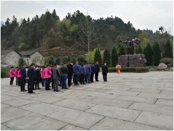 清明祭英烈,精神永传承。为缅怀革命先烈的丰功伟绩,弘扬爱国主义精神,激发崇尚先烈,传承精神的热情,4月4日下午, 天堂寨公司组织干部职工,在刘邓大军千里挺进大别山前方指挥部旧址,开展“传承·2019清明祭英烈”主题活动,深切缅怀革命先烈的丰功伟绩。