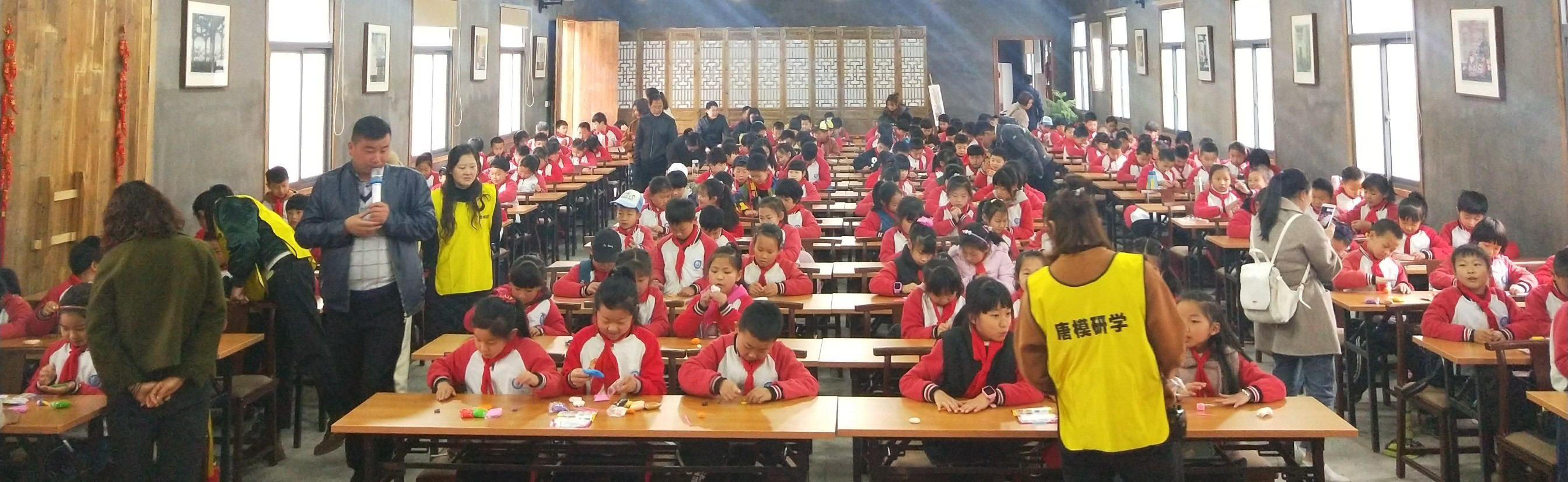 4月10-11日,来自北京、上海、杭州、武汉、景德镇及省内蚌埠、宣城等地的九百余名学生走进唐模景区,实地体验学习徽派建筑模型景观搭建、国学礼仪、园林写生、碑帖拓片、民俗演艺等《唐模研学》课程。
