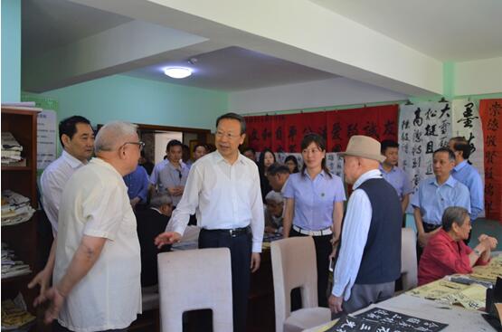 杜青林副主席一行及省、市、区多位领导先后来到老年公寓自理区、护理区、老年活动室及营养膳食中心参观公寓建设情况并与正在参加老年书画班学习的老师学员进行了实地交流;走进老人房间仔细查看老人们的生活条件,与老人们亲切交谈,关切地询问老人们的身体生活情况。