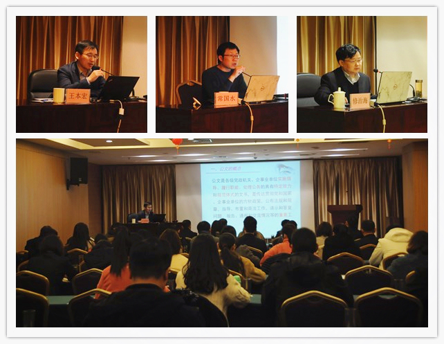 本次培训,集团公司综合部特意邀请省委办公厅督办处处长、南京大学经济法学博士王本宏,人民网安徽频道编辑中心主任、复旦大学新闻信息采编学院硕士常国水,分别就“公文写作规范与技巧”、“新媒体环境下的新闻”等相关课题进行了专题培训。并且由集团公司董事会秘书、综合部部长修治海以“公文处理规则与公文管理”为主题,结合学习贯彻新修订的《安徽省旅游集团有限责任公司公文处理实施办法》,对公文种类、公文格式、行文规则、公文拟制、公文办理、公文管理等方面内容全方位进行了讲解、培训和指导。同时,综合部针对即将改版上线的集团公司门户网站及信息报送平台,对各公司、集团公司各部门参训人员进行了新闻信息报送实务操作培训。