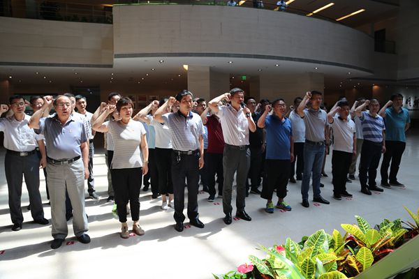 为贯彻落实中央和省委“不忘初心、牢记使命”主题教育工作会议精神,推动主题教育扎实开展,7月11日,省城建院党委开展“不忘初心,牢记使命”革命传统教育活动,重温入党誓词,接受革命传统教育,激发党建工作活力。总院领导班子成员、各级党组织书记及中层以上党员参加活动。