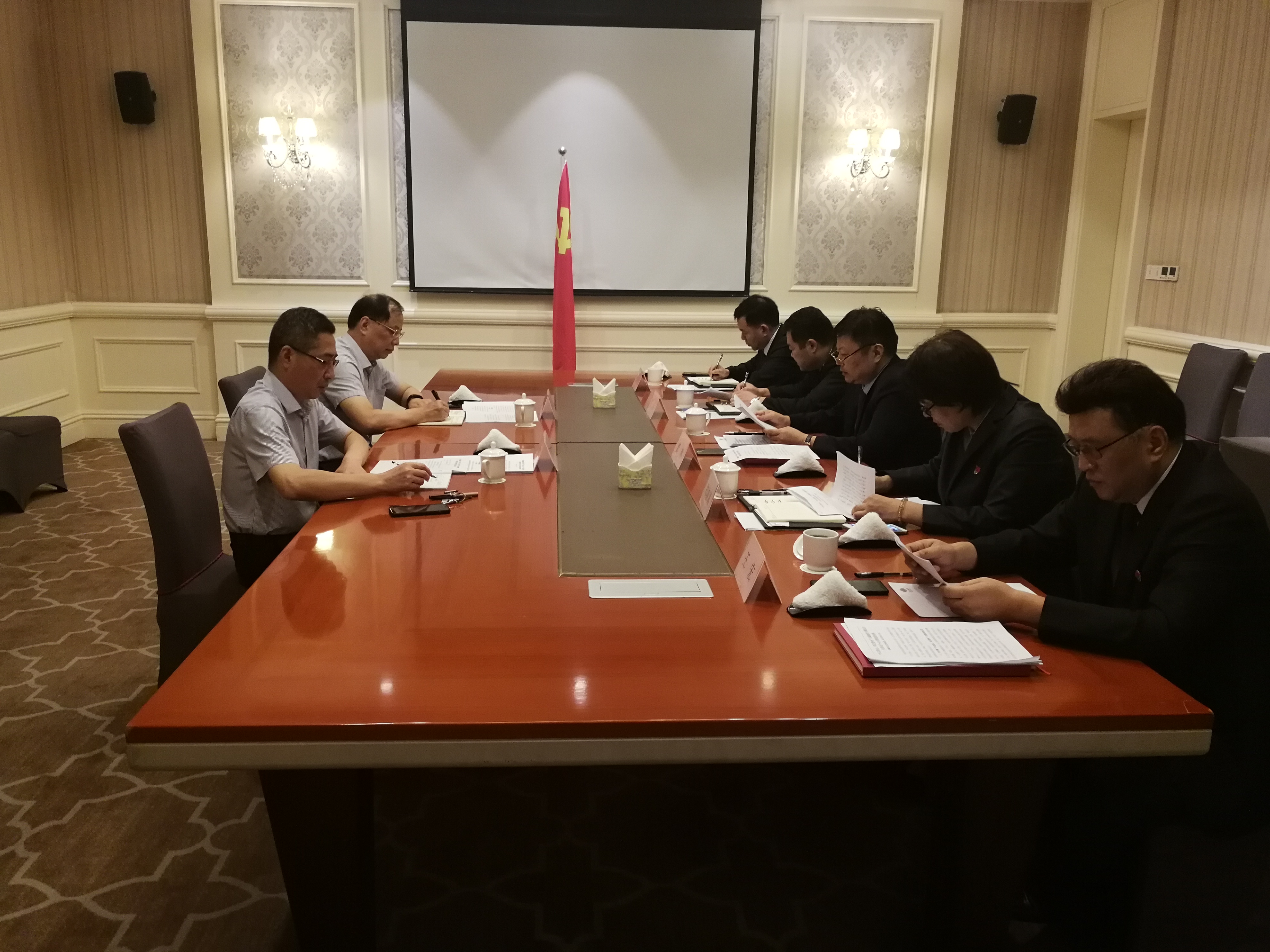 根据集团公司党委关于召开“不忘初心、牢记使命”主题教育专题民主生活会工作要求,2019年8月30日上午,安徽饭店领导班子组织召开了“不忘初心、牢记使命”主题教育专题民主生活会。集团党委第九巡回指导组组长、集团公司副总经理李文胜,集团运营管理部副部长张元徽莅临会议指导。饭店党委书记、董事长、总经理龚林主持会议,党委委员、副总经理郑淑真,党委委员、副总经理、董事张兵,党委委员、副总经理王宏,党委委员、纪委书记、工会主席费平参加了专题民主生活会。