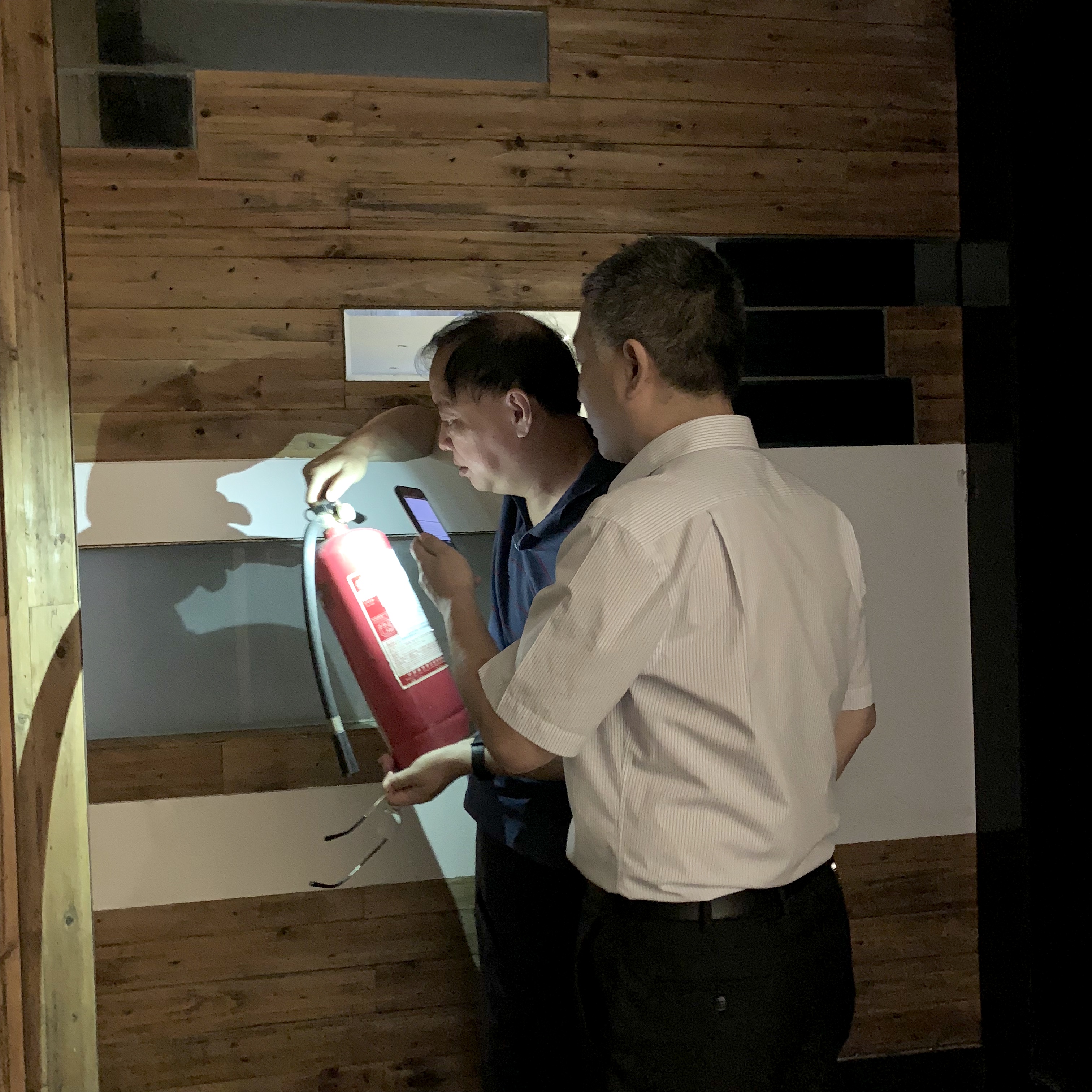 汤伯生、张元徽、吴云海在徽宴楼检查消防器材