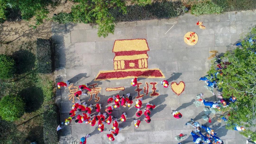 秋日的唐模,空气中散布香甜的桂花香,甜蜜而祥和。2019年10月15日上午,来自山东济南的研学团近300人师生,相聚唐模法国家庭旅馆七天井广场,用一场充满创意的晒秋DIY成果秀,告诉大家,晒秋研学行还能这么玩!