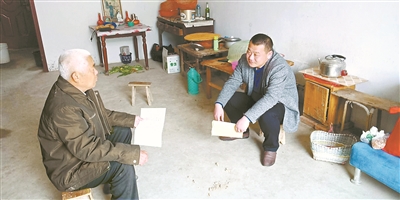 图为朱建波(右)到受处理的党员家中送达处理决定书。(资料图片)