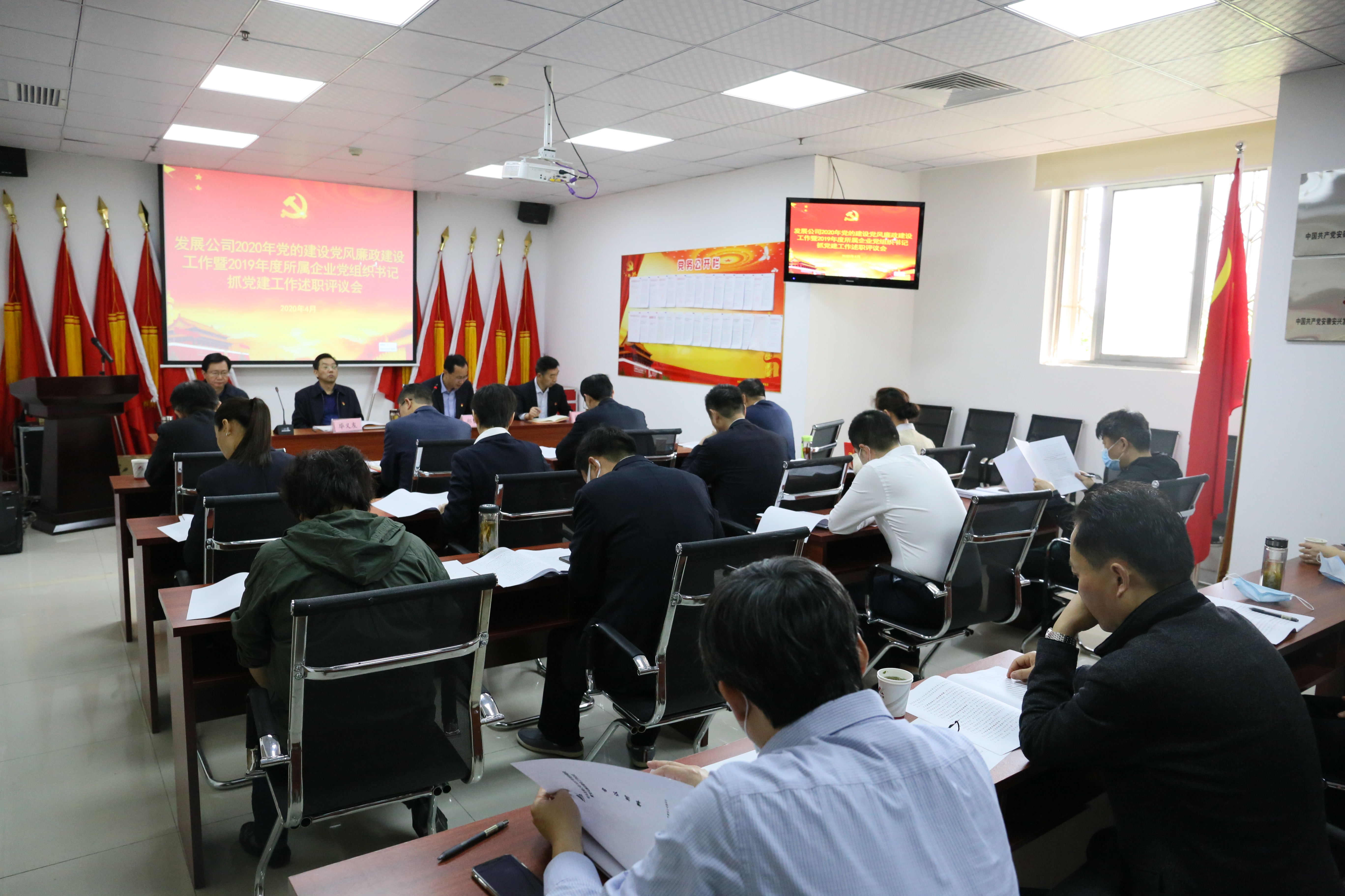 4月29日上午,安兴发展公司党委召开2020年党的建设党风廉政建设工作暨2019年度所属企业党组织书记抓党的建设工作述职评议会?;嵘?,布置了2020年发展公司党的建设工作及纪委工作要点,所属企业党组织书记2019年度抓党建工作进行了述职。安兴发展公司党委班子、各部门中层及所属企业党组织书记、主要负责人参加会议。
