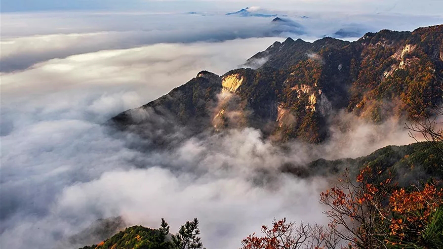 秋色醉人,天堂寨为最。每到秋天,如火如荼的红色耀眼的金色,清澈见底的蓝色每一种颜色的汇集把天堂寨变成了一个五彩斑斓之地