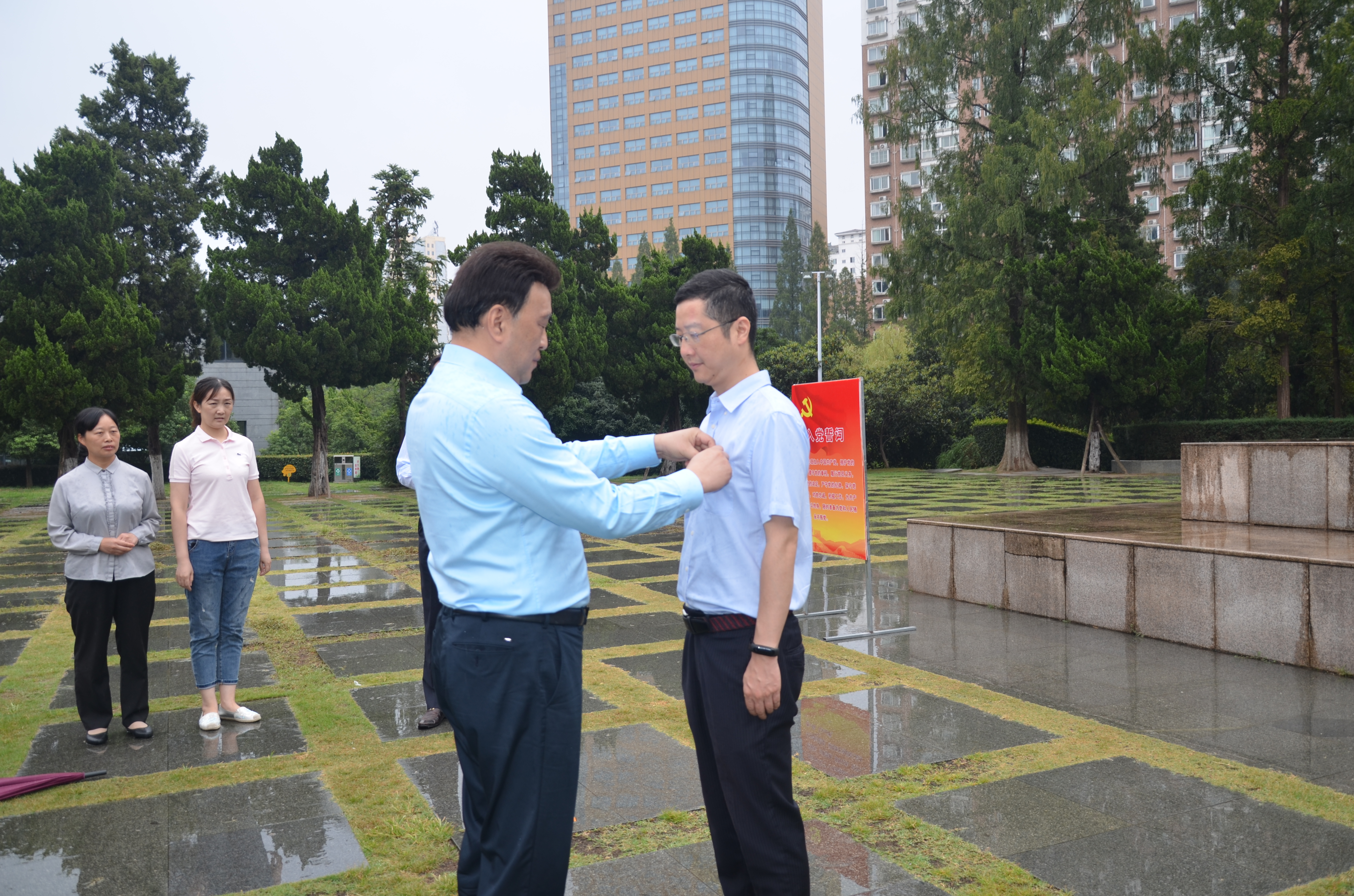 在参观完大别山革命历史纪念馆后,全体人员来到人民英雄纪念碑前,列队肃穆,鞠躬致敬。在纪念碑前,安徽饭店党委为4名新发展的预备党员举行了庄重的入党宣誓仪式,并带领全体党员重温入党誓词。