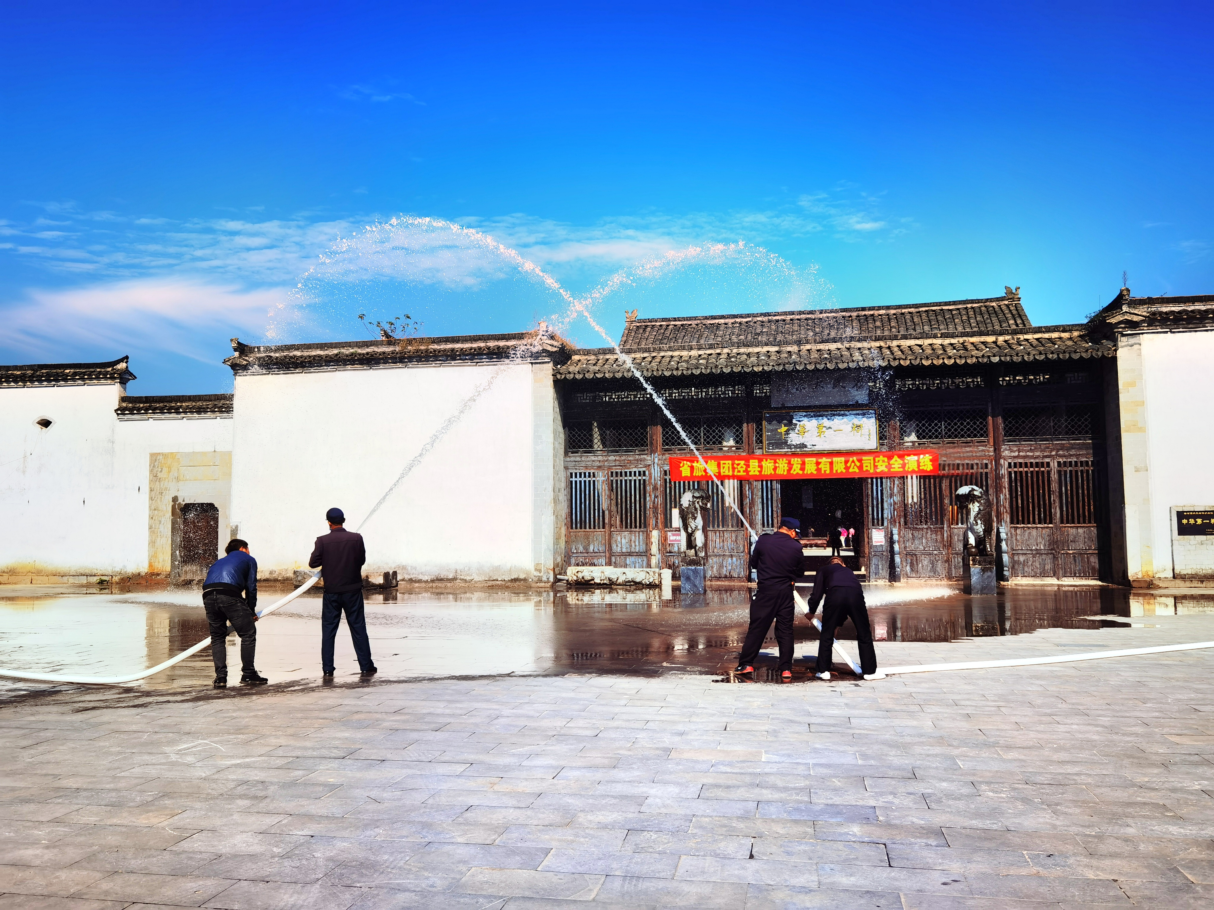为筑牢桃花潭景区重点文物场所的消防安全,切实增强景区应急能力,10月20日上午,泾县旅游公司成功组织开展了一次消防安全实战演练。泾县旅游公司党支部书记、总经理马政,支委委员、副总经理叶栋及桃花潭景区全体员工参加了此次消防实战演练,并邀请了集团公司运营管理部副部长张元徽及县文旅局、县应急管理局、县融媒体中心、桃花潭镇政府、桃花潭镇派出所等相关部门负责人到场指导。