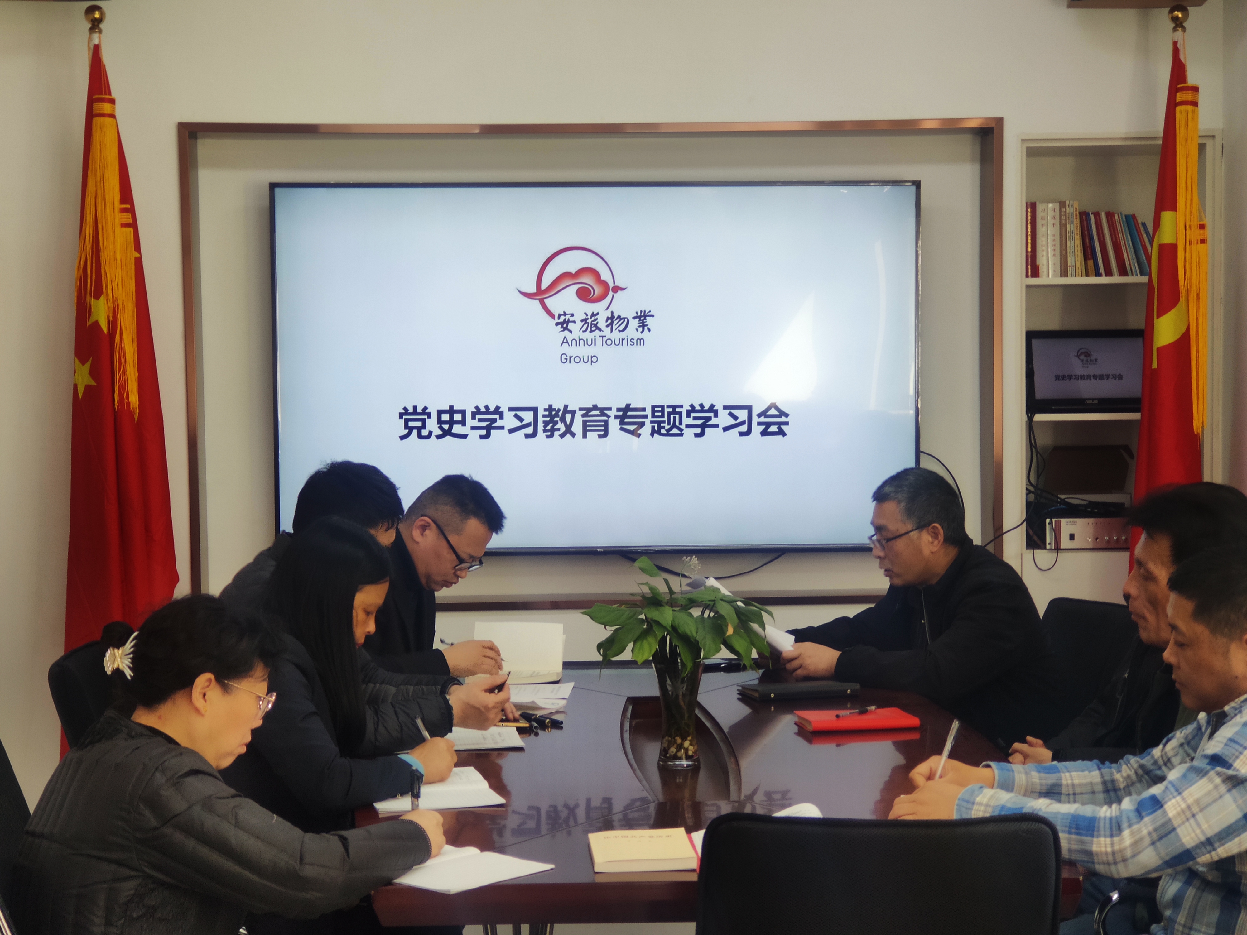 会议首先学习了第一议题。吴云海传达了集团党委《关于印发<省旅游集团党委开展党史学习教育的实施方案>的通知》(皖旅党〔2021〕21号)文件精神。吴云海强调,今年是建党100周年,作为国有企业基层党支部,必须将党史学习教育作为当前和今后的一项重要政治任务,知史明志,知史悟今。同时,集团物业公司应结合本公司实际,制定《集团物业公司党支部开展党史学习教育的实施方案》。