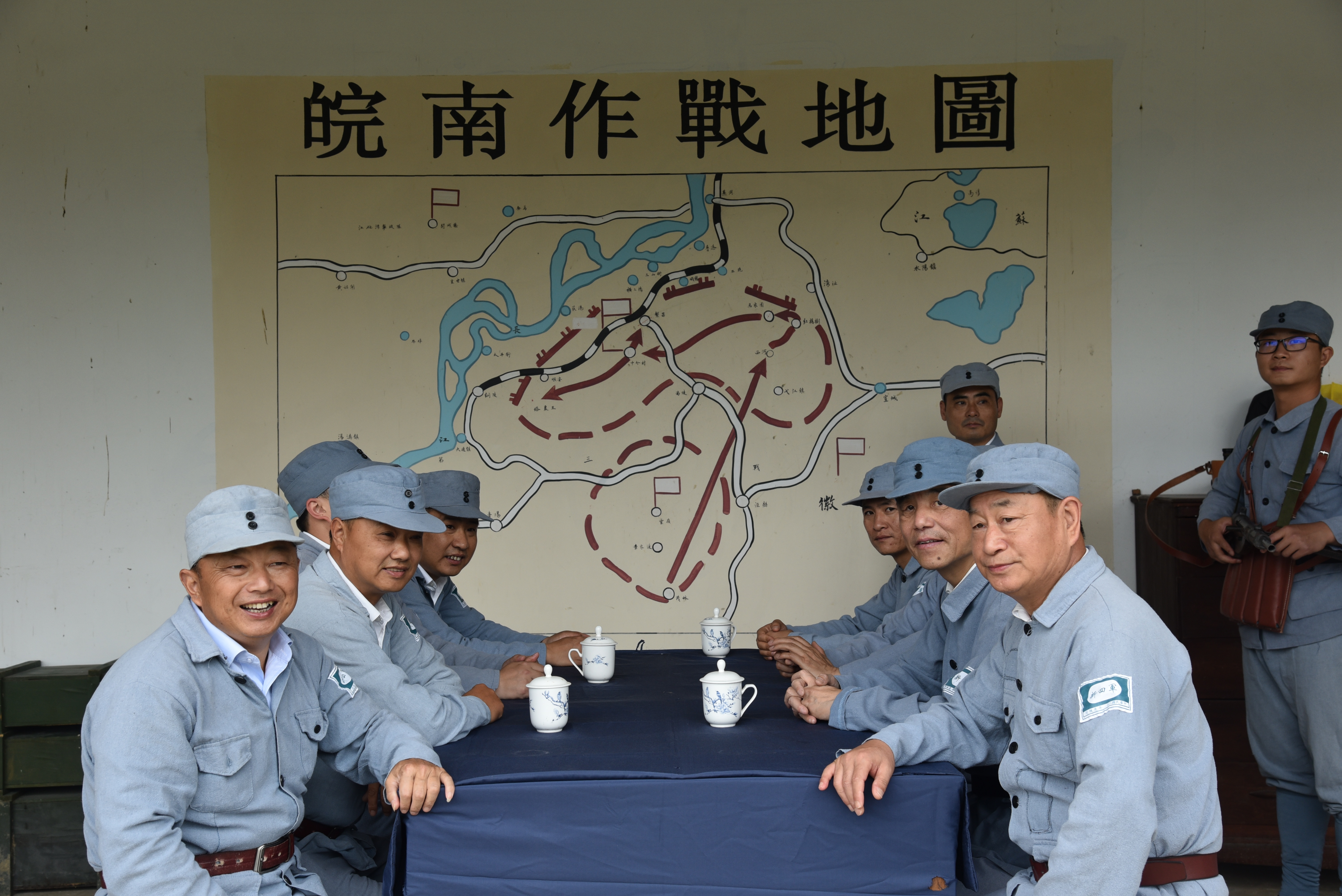 活动开始前,全体人员怀着无比兴奋与敬仰的心情换上了新四军军装,随后来到活动场地,在工作人员的指导下,学习军事历史课程、列队训练、放哨体验、侦察巡逻、阻击日军、战地救护,真实参与体验当年新四军的生活和战斗,切身感受红色精神。模拟演习了一场《新四军云岭保卫战》,身临其境地感受到了当年皖南新四军在敌强我弱的形势下,我新四军指战员不怕牺牲、浴血奋战,最终消灭数以千计侵犯我皖南抗日根据地日寇的英雄事迹。