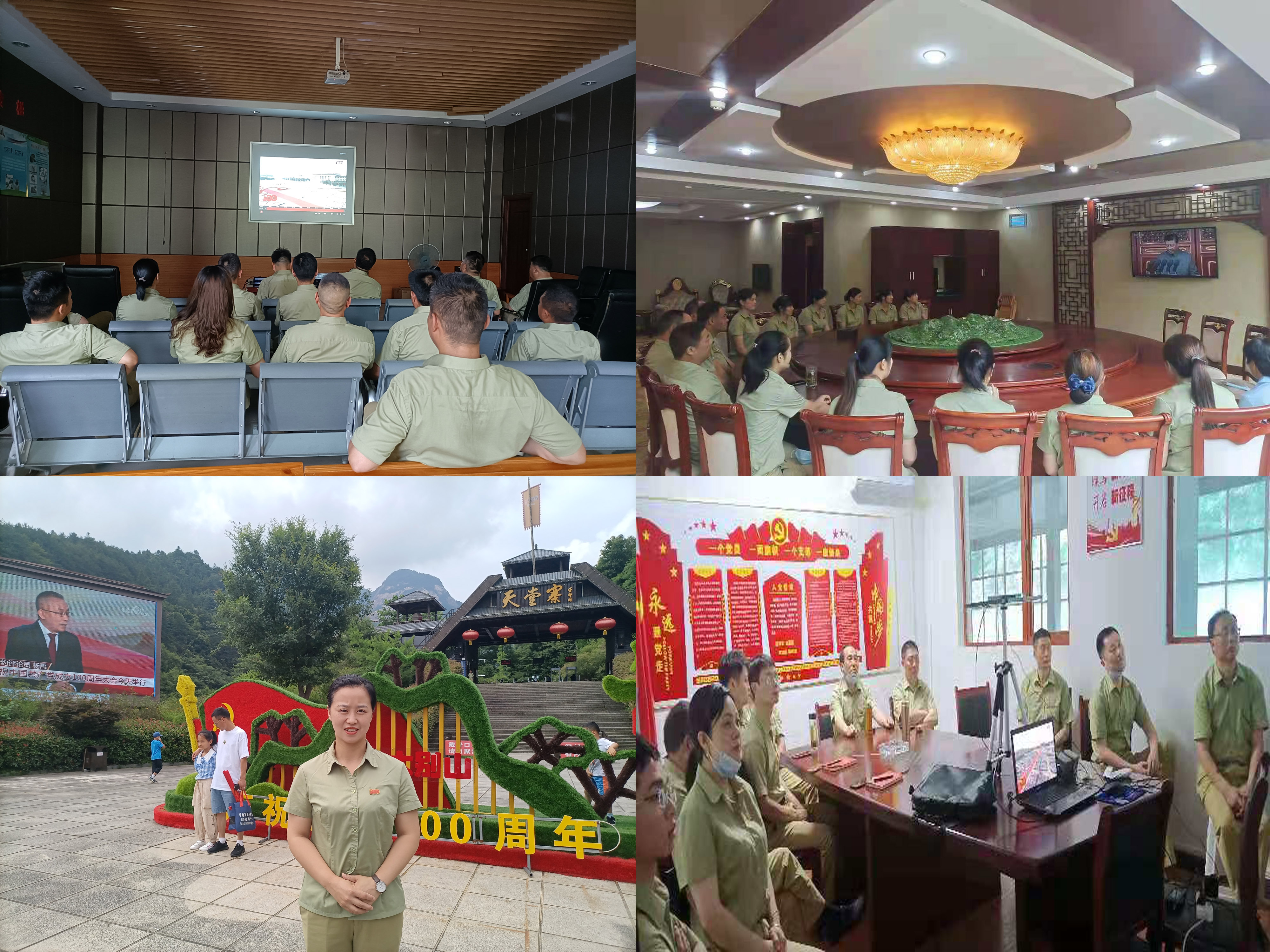 天堂寨公司党组织结合实际,采取相对集中的方式,分别在公司本部、索道分公司、度假山庄组织党员干部职工收听收看庆祝中国共产党成立100周年大会实况直播,并利用景区广场室外各大屏幕进行实时转播,引起了不少游客驻足收听收看。大家认真聆听习近平总书记的重要讲话,共庆中国共产党百年华诞。