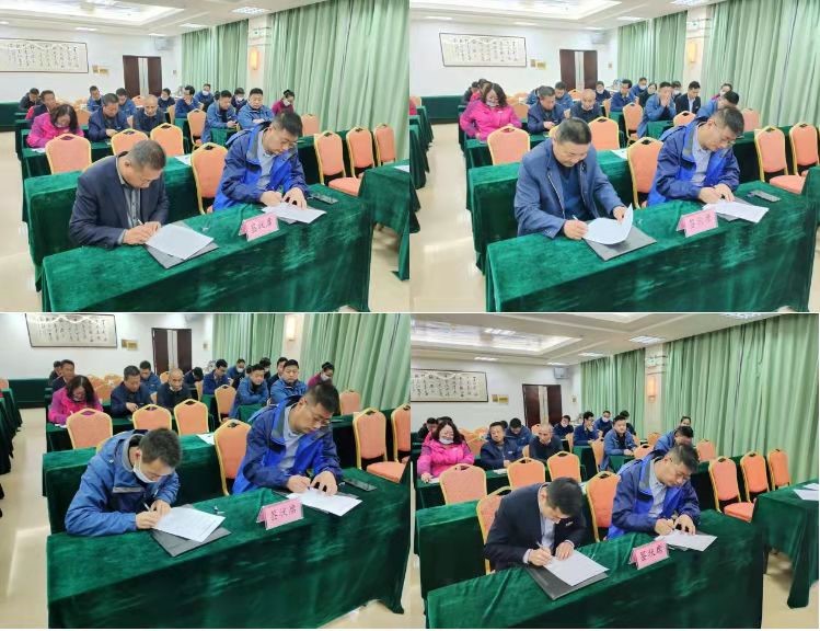 会议最后,公司总经理芦军与分管安全的副总经理吴昊签订了防火责任状;吴昊分别与十个责任片区负责人签订了防火责任状。