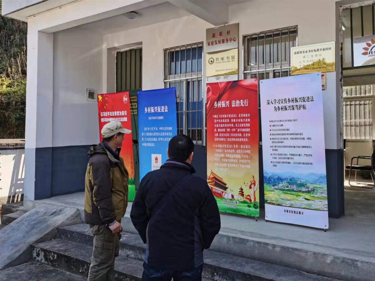 活动现场,法务风控部相关人员在村委会布置了宪法、乡村振兴促进法等普法宣传展板,向新联村村民发放了农村法律知识实用问答等“八五”普法宣传读本,并对2021年新颁布的乡村振兴促进法进行了宣讲。