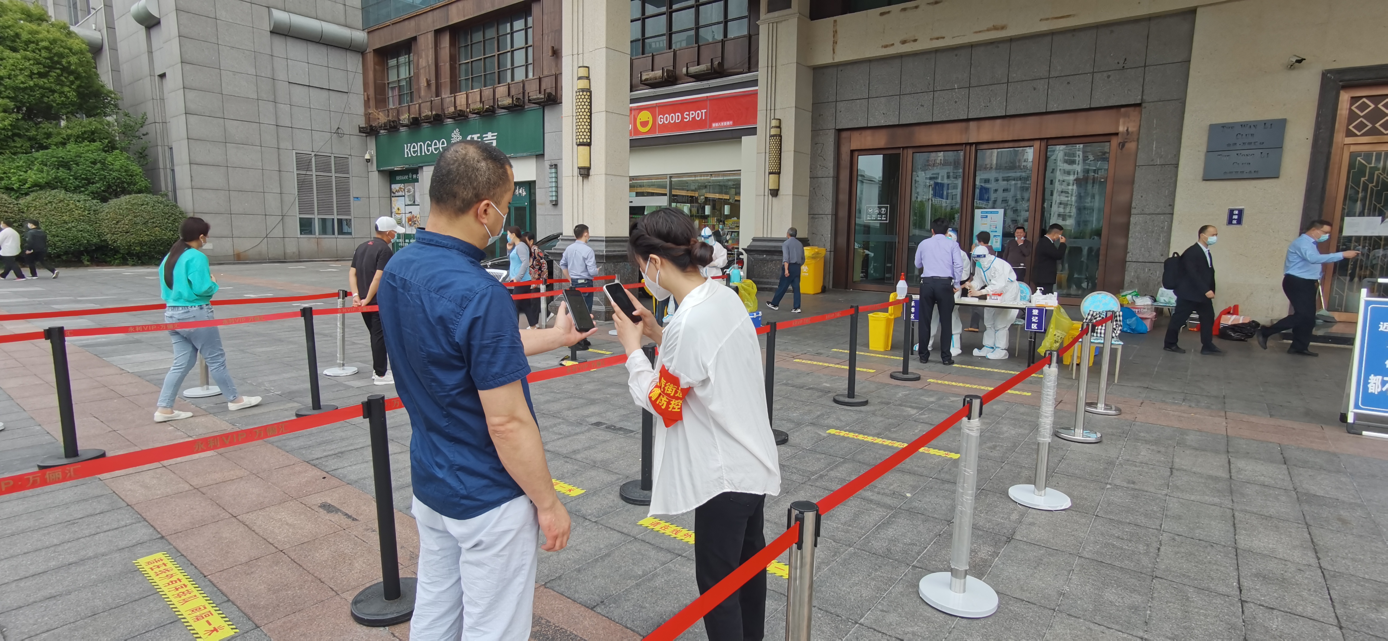 4月26日,在收到街道核酸检测筛查工作需要帮助的临时通知后,公司立刻安排志愿人员前往IFC广场协助工作。经过简单的培训讲解后,志愿者很快进入角色,他们一方面协助医护人员做好核酸检测信息录入,另一方面对排队候检的市民进行宣传疏导,维护好现场秩序。当天气温较高,早上八点持续到下午五点的志愿者工作非常辛苦,但集团物业的志愿者仍以坚守与负责的态度完成了规定工作,为本轮辖区的核酸检测筛查尽心尽力,同全体市民一道守护抗疫战果。