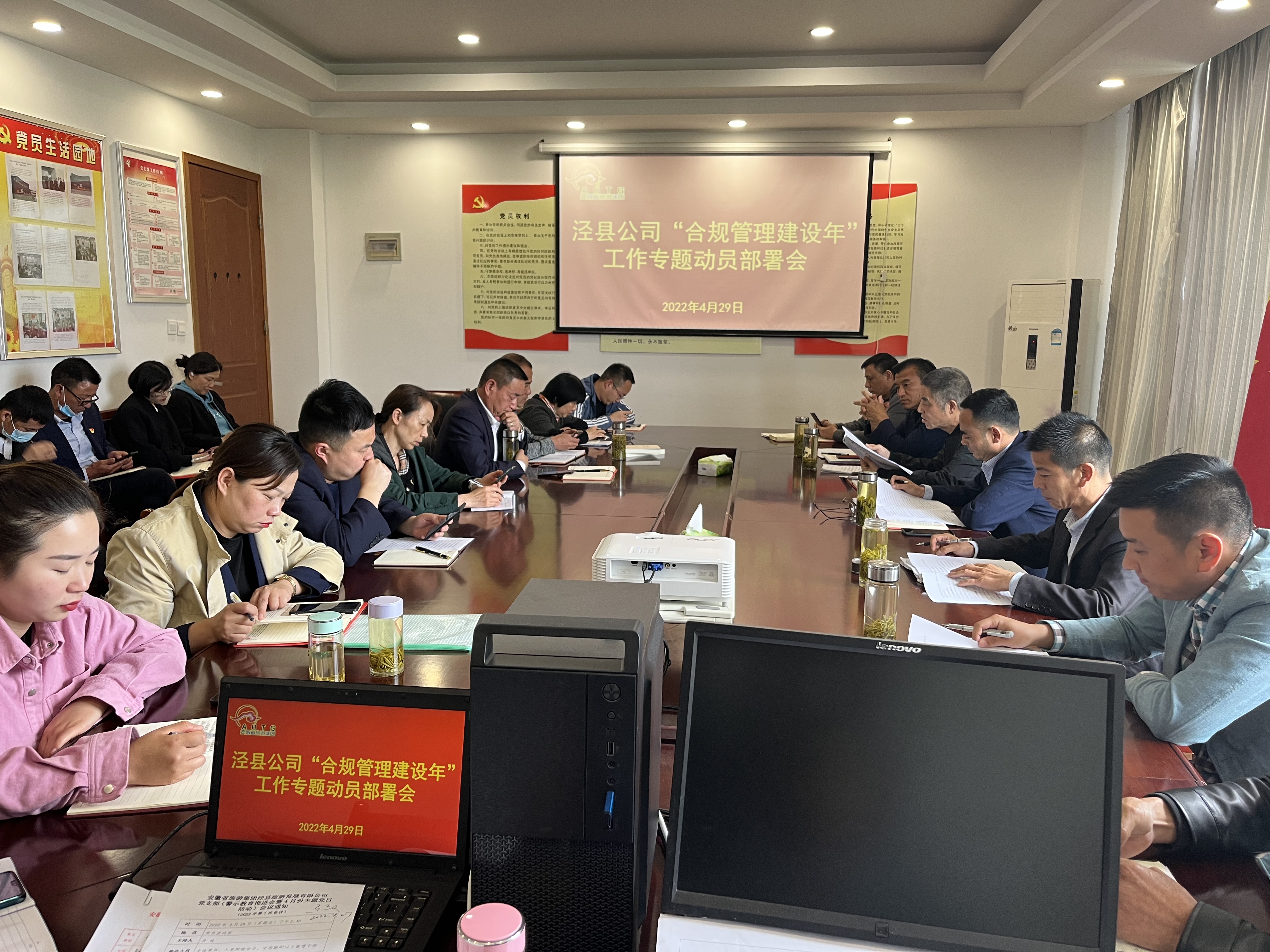 会上,对泾县公司全面开展“合规管理建设年”工作作出具体安排,会后制定印发工作方案和责任清单,聚焦重点工作,明确工作举措,强化工作协同,确保各项工作切实有效落地。
