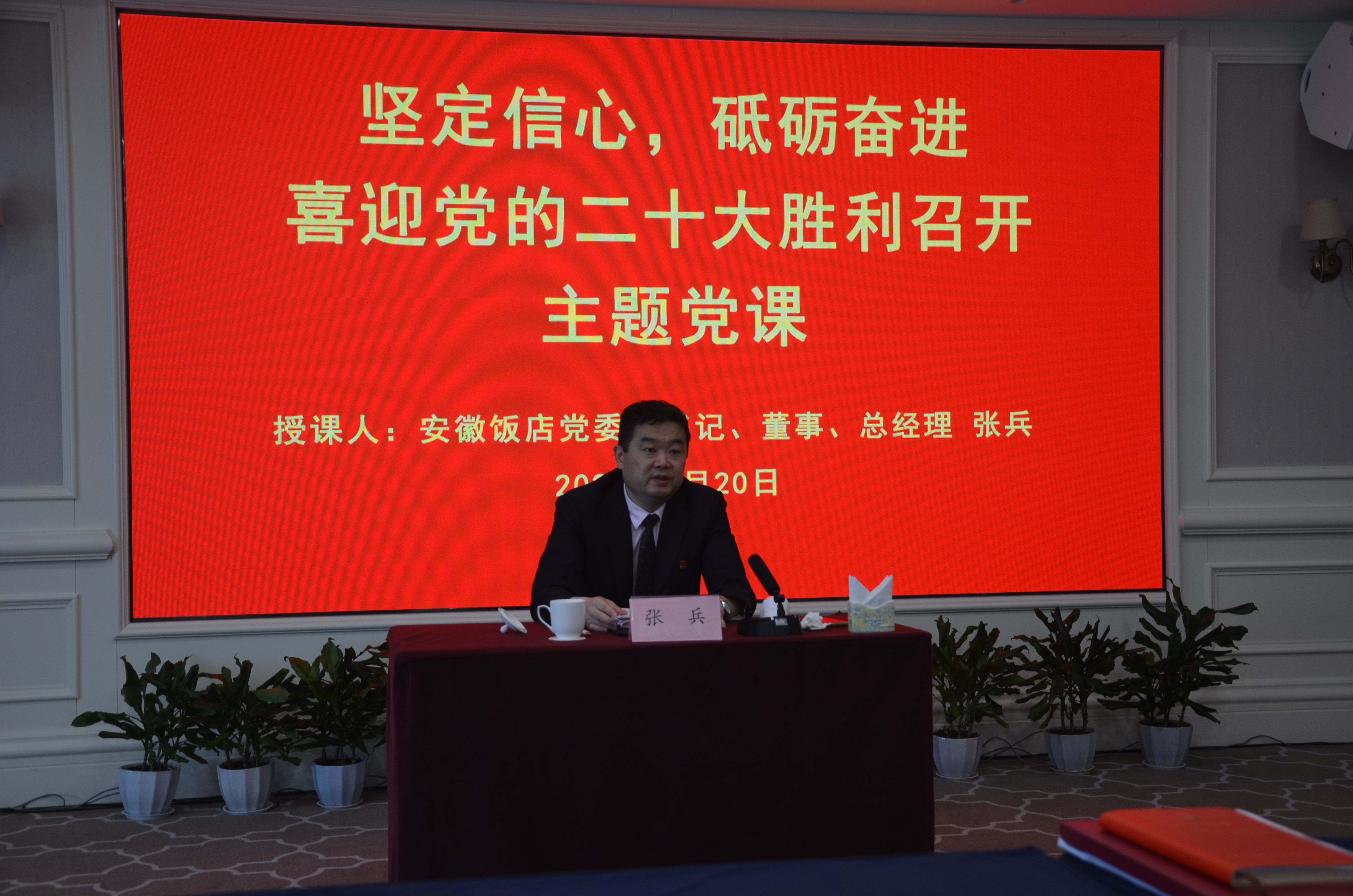 安徽饭店党委副书记、董事、总经理张兵为饭店党员上主题党课