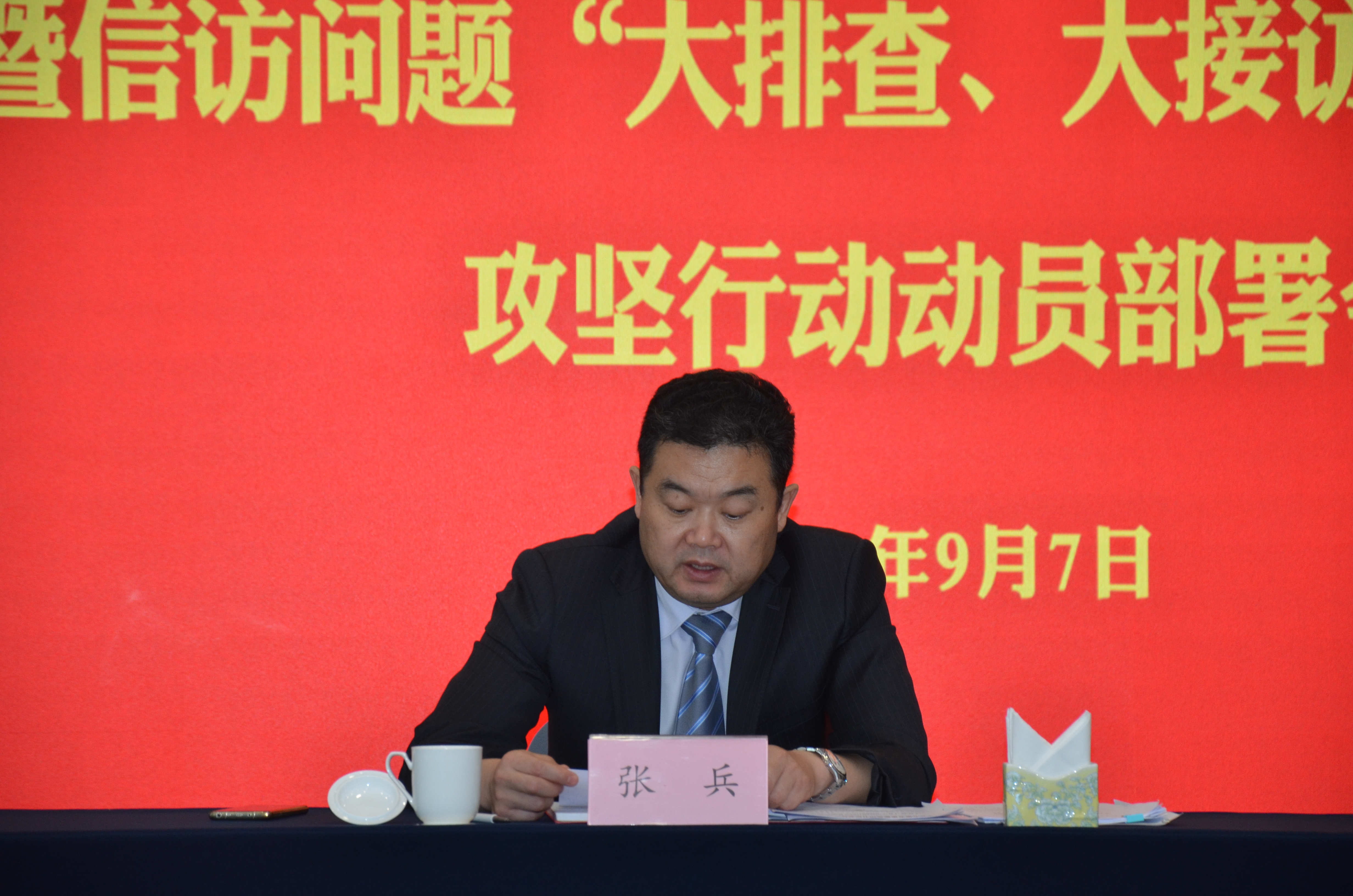 之后,饭店党委副书记、董事、总经理张兵围绕饭店开展“基层党组织建设质量提升年”和信访问题“大排查、大接访、大化解”攻坚行动作了动员讲话。