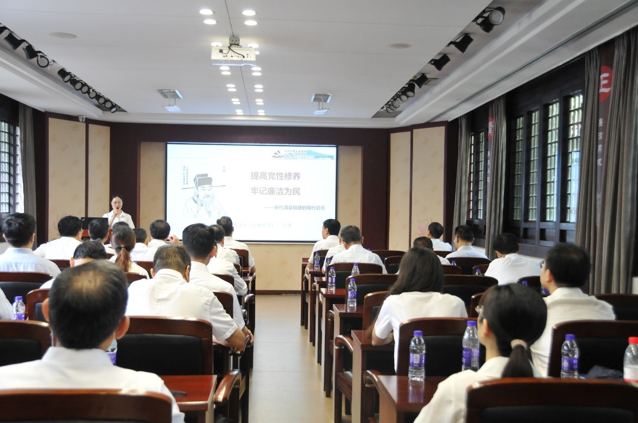 在清风讲堂,中共合肥市委党校博士汪倩以《提高党性修养, 牢记廉洁为民——宋代清官包拯的现代启示》为题,运用宏大的历史视野和深刻的时代思维,为大家讲授了一堂生动的廉政教育专题党课,启示大家要从包公的“忠君爱国”警示大家要坚定理想信念,做到对党忠诚;从包公的“重视家风”警示大家要重视作风建设、加强道德修养;从包公的“严明法纪”“勤政为民”警示大家要加强纪律修养,坚持人民至上。