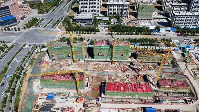 目前景区广场凤采楼、阙楼基础至正负零混凝土浇筑完成;地下车库地下室顶板防水完成已过半;社区服务中心土方开挖80%;1#、2#楼桩基检测完成;9#楼基础验槽完成,褥垫层铺设完成,具备垫层浇筑条件;10#、11#、20#、23#楼截桩完成。项目营销中心已于9月10日盛大开放。
