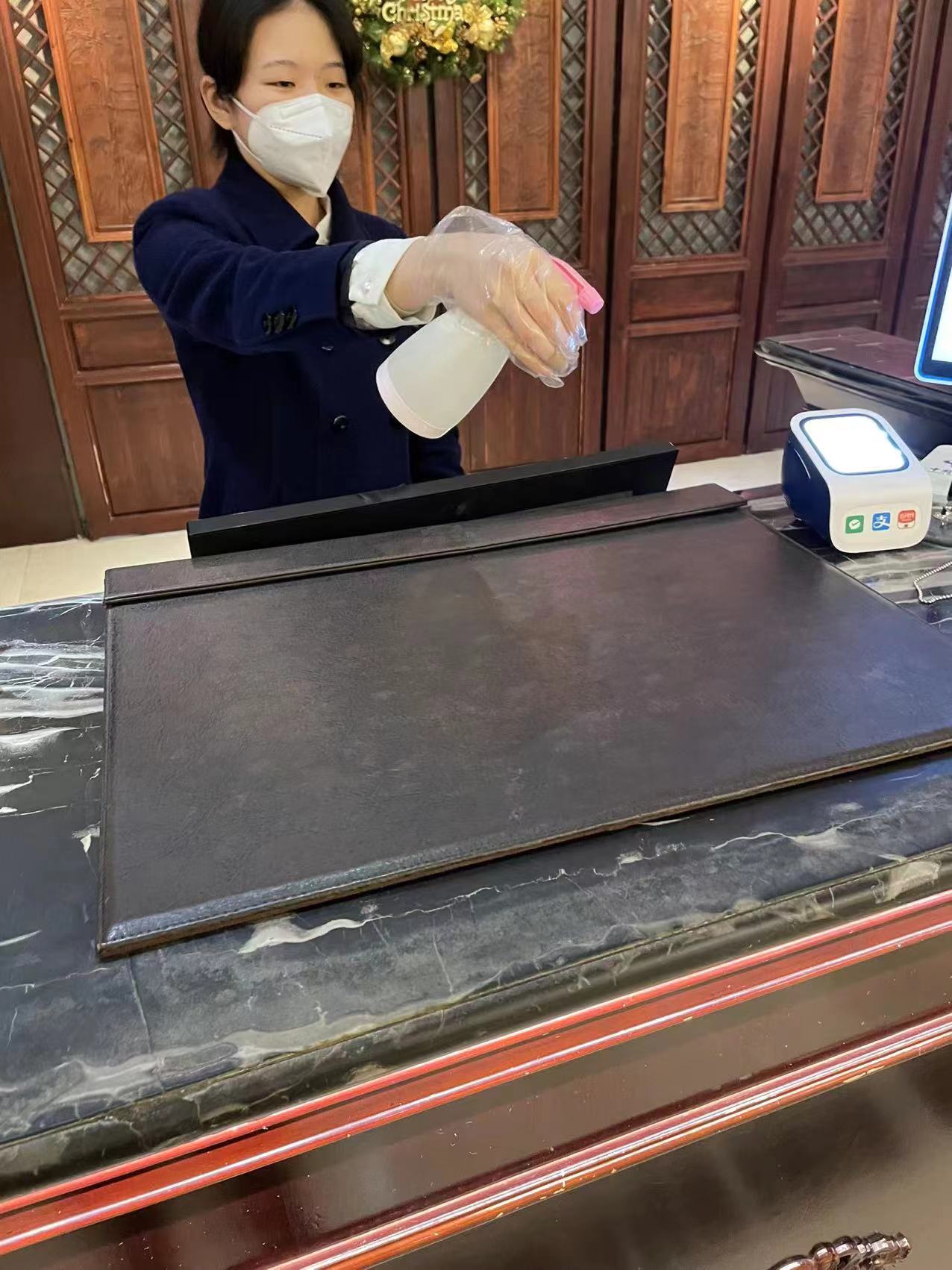 一是前端预防有力。饭店根据政策调整及时对疫情防控预案进行修订,要求前台及各部门按规定开展相关工作。成立疫情防控领导小组,由饭店总经理担任组长,经营班子任副组长,各部门主要负责人为组员,统筹饭店整体工作协调、政策宣传、信息通报、规范防疫等具体事务。针对疫情多发现象,多次召开疫情防控部署会,要求相关部门落实员工及客人相关疫情信息收集报告、接待信息对接上报、每日进店人员巡视、体温测量等具体工作,及时掌握员工和客人健康状况,积极应对突发情况。印发了关于进一步落实当前新冠疫情防控措施工作的通知,正确引导饭店职工自觉履行“健康第一责任人”主体责任,实现从“要我防”向“我要防”转变,强化饭店在疫情经营安全、有序运行。同时,做好防疫物质储备,制定疫情防控物质采购计划,购置消毒酒精、消毒液、N95口罩、防控药品等防疫物质,并安排专人管理,及时补充。