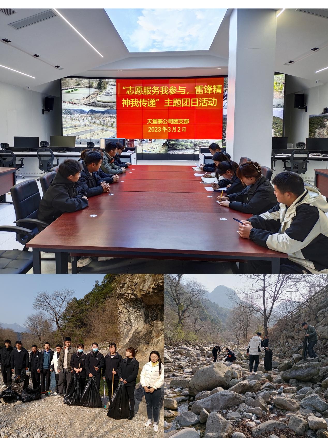 天堂寨公司团支部组织团员青年和部分青年党员开展 “志愿服务我参与,雷锋精神我传递”主题团日活动,大家学习了“雷锋语录”,清理景区河道内白色垃圾,?;ち嘶春铀础?/span>