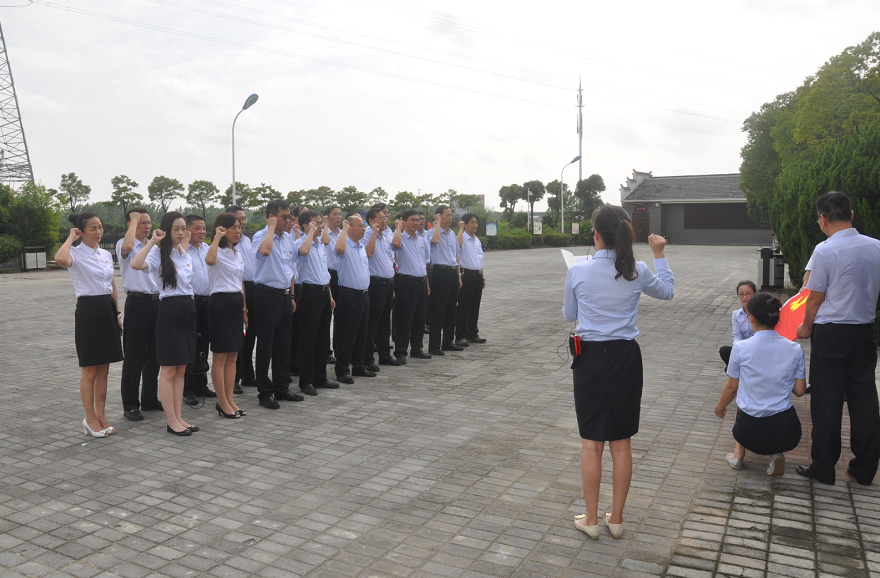 全体参加活动的党员干部职工面对鲜艳的党旗,庄严地举起了右手,郑重地重温了入党誓词。