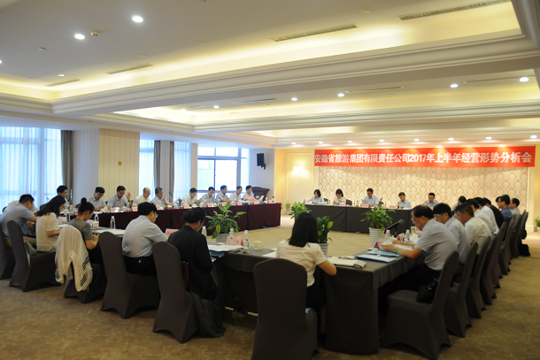 2017年7月21日,安徽省旅游集团2017年上半年经营形势分析会在集团公司所属安徽饭店召开。集团公司领导班子成员、张辉、沈国强、艾红卫、张长夫、汤伯生、董仁友、张业根、顾建华出席会议。省国资委第七监事会主席董亚庆、办事处主任完礼船等应邀出席会议。集团公司所属12家重点子公司总经理、集团本部各部门主要负责人参加了会议。