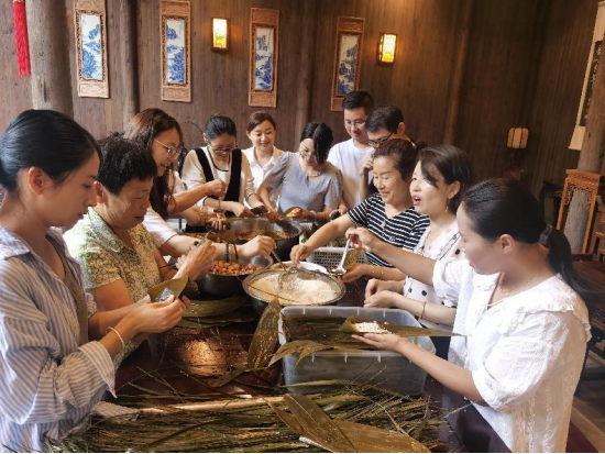 为更好地弘扬传统古文化,让全体员工一起感受节日氛围,2023年6月21日,唐模旅游公司在唐模法国家庭旅馆-慎德堂内举办了“粽香端午送祝?!卑兆踊疃疃肓颂颇4宕迕窦肮靖鞑棵旁惫げ渭?。